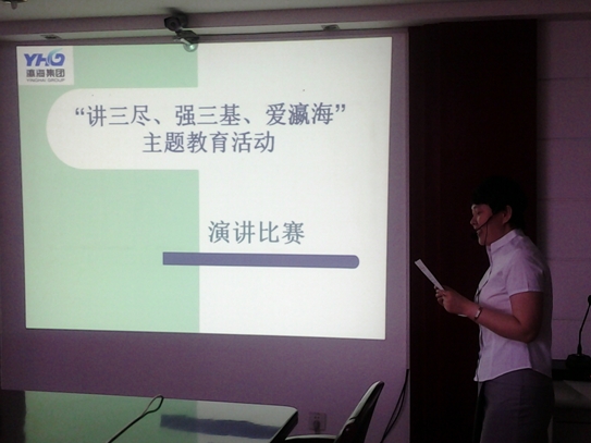 2012年5月30日,集團(tuán)總裁辦在總部會議室組織全員開展“講三盡、強(qiáng)三基、愛瀛?!毖葜v賽活動,集團(tuán)機(jī)關(guān)共10位代表選手參加了此次演講賽。集團(tuán)常務(wù)副總裁陳琴、運行管理部部長倪宏山、銷售公司經(jīng)理馬君、人力資源部部長馬麗霞、投資發(fā)展部經(jīng)理樓高峰及總裁辦主任王華擔(dān)任此次比賽的評委,總裁辦古玲芝主持整場比賽。